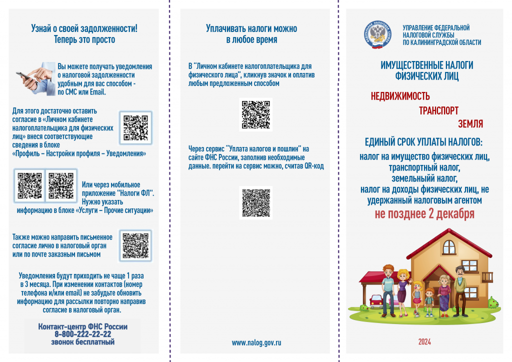 Управление Федеральной налоговой службы по Калининградской области информирует граждан о необходимости своевременной уплаты налогов.